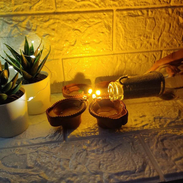 When water is poured on this Chronos-made LED Brown Diya, it illuminates!! Unbelievably? It's true, believe me! To light the diyas with water when there was no oil, inspired by the folklore!